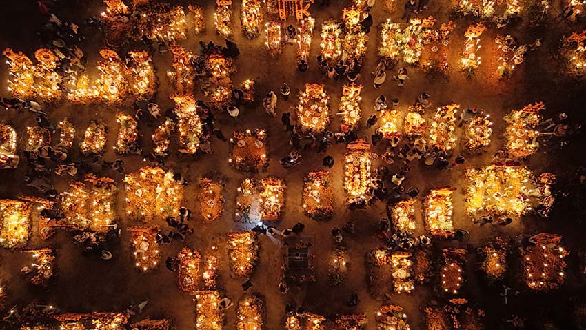 La isla de Janitzio vivió una de las velaciones más emotivas, con pescadores colocando sus emblemáticas redes mariposa, iluminadas por antorchas, en un ritual que simboliza la guía para las almas en su trayecto.